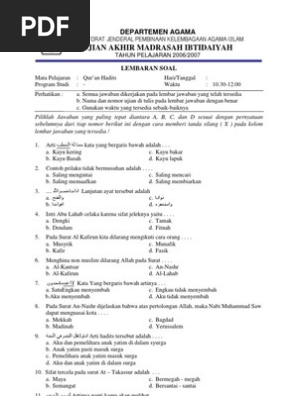 .Latihan soal dan kunci jawaban uambn al qur an hadist mts tahun 2019 2020 yang bersumber dari naskah asli soal uambn al qur an hadist mts tahun 2018 2020 bertujuan untuk memantapkan. Berikut ini adalah rincian soal uts al quran hadits kelas 6 sd/mi semester 1.