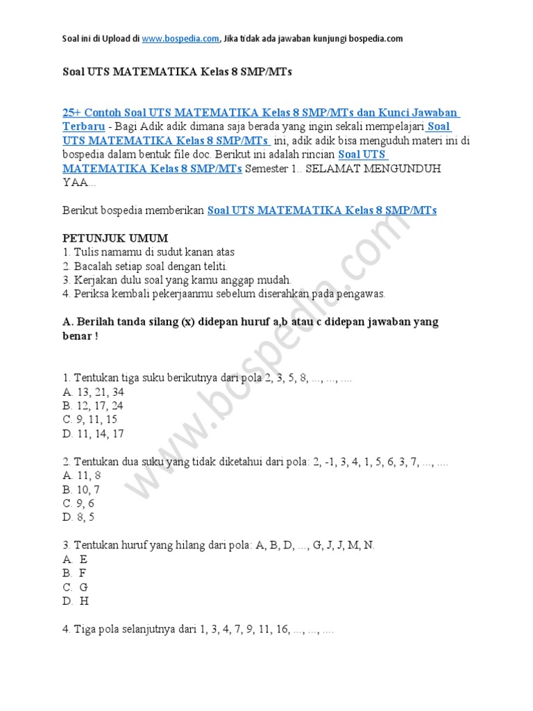 13+ Soal Uts Matematika Kelas 8 Semester 2 Dan Kunci Jawabannya Pictures Update Terbaru Gratis Download Soal Uts Matematika Kelas 8 Semester 2 Dan Kunci Jawabannya. Selamat kumpulan soal matematika kelas 8 semester 2 dan jawabannya. Makalah materi soal matematika kelas 8 diterangkan mulai dari pengertian, jenis, fungsi, struktur, unsur, tujuan, ciri, kaidah, konsep, dan contoh soal matematika kelas 8 semester 1 dan 2 2019.