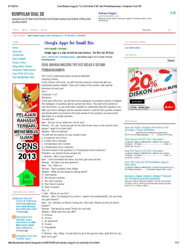 15+ Soal Try Out Bahasa Inggris Kelas 6 2019 Gif