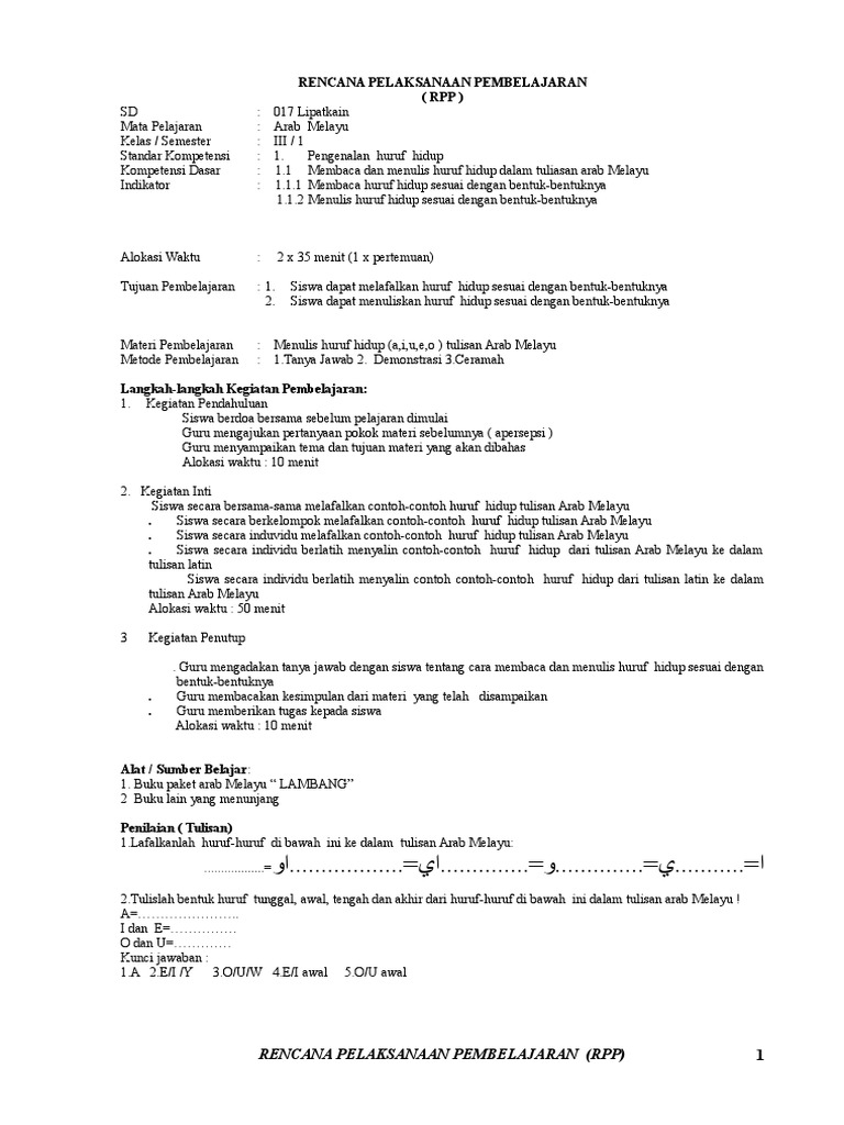 Pelajaran Arab Melayu Kelas 6. Rpp bahasa arab mi/kelas vi /semester 1. Arab melayu kelas 6 aiueo.