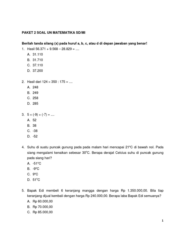 20+ Soal Un Matematika Sd Images Kurikulum Doc Soal Un Matematika Sd. Kumpulan soal matematika sd (www.examsworld). Berikut adalah 40 soal yang mungkin saja nanti keluar di un matematika sd :