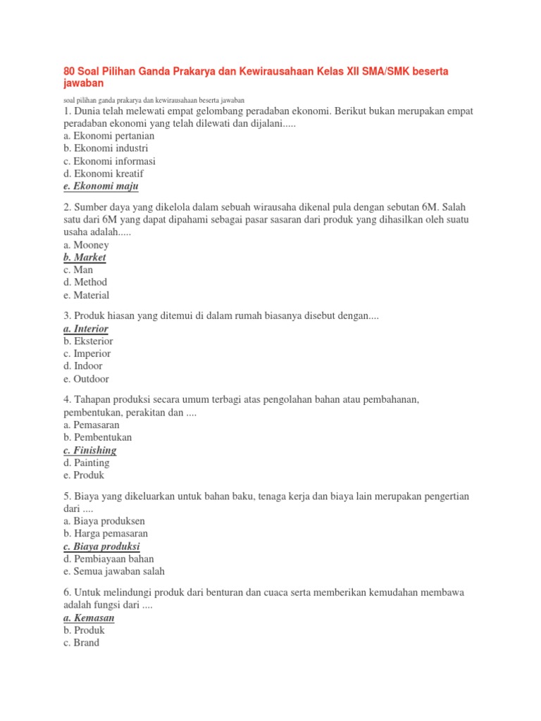 Soal penjas tentang bola volly pilihan ganda dengan kunci jawaban.docx. Soal satu pilihan ganda & jawaban produk kreatif dan kewirausahaan hak atas kekayaan intelektual. Demikian pembahasan materi kita kali ini mengenai soal kewirausahaan (kwu) kelas 11. Jika pembaca butuh soal tersebut, silahkan unduh pada link di atas. Soal sel dan organel biologi pilihan ganda +pembahasan. Semoga soal ips/ geografi tentang kependudukan tersebut bermanfaat. Cara pandang dan dukungan terhadap inovasi menurut inovasi bertahap adalah. Berikut dibawah ini adalah beberapa contoh soal pilihan ganda tentang invitation beserta kunci jawabanya. Semoga bermanfaat dan dapat menambah wawasan kita. Cara hidup yang memperhatikan segala aspek kondisi kesehatan b. Soal penjas tentang bola volly pilihan ganda dengan kunci jawaban.docx. Teks klasifikasi 1.sebutkan bagian atau struktur teks. Cara hidup yang tidak 5. Untuk jumlah soal pada soal pilihan ganda yaitu berjumlah 80 soal, sedangkan untuk soal dalam bentuk essay yaitu berjumlah 10 soal. Stephen perry yang mempunyai perusahaan karet vulkanisir memperoleh paten untuk karet gelang pada tanggal 17 mei 1845. Kelompok penyakit berikut ini yang disebabkan oleh virus adalah … baca juga : Kunci jawaban soal pilihan ganda sistem hukum dan peradilan nasional. Soal kewirausahaan kelas 11 semester 1 dan semester 2 beserta kunci jawaban nya terlengkap dan terbaru, soal pilihan ganda, esay dan soal diskusi. Korupsi yang mengandalkan perantara ekonomi atau politik c. Lingkungan rt 03 kurang bersih 8. Pada pemain sepak bola seorang pemain diberi tugas khusus untuk mejaga seorang pemain lawan agar tidak memasuki daerah atau mengacaukan pertahanan adalah pertahanan kumpulan soal, materi, dan kunci jawaban. Latihan soal pilihan ganda bab kewirausahaan. Trakea dan alveolus ditunjukkan oleh. Soal dan jawaban latihan mata. Memiliki tata bahasa yang lengkap 12. Aturan tentang wajib daftar perusahaan telah ditetapkan dan diatur jawab, faktor yang diperlukan dalam pemilihan lokasi usaha adalah daya saing, kondisi geografis soal latihan jaringan dasar komputer beserta jawabannya. Mendorong para konsumen untuk berbelaja pada saat itu juga c. Soal penjas materi senam lantai beserta kunci jawaban. Perilaku kewirausahaan sosial dan ekologis meliputi … a. 30 soal prakarya beserta jawabannya. 50 soal prakarya dan kewirausahaan us/usbn smk.