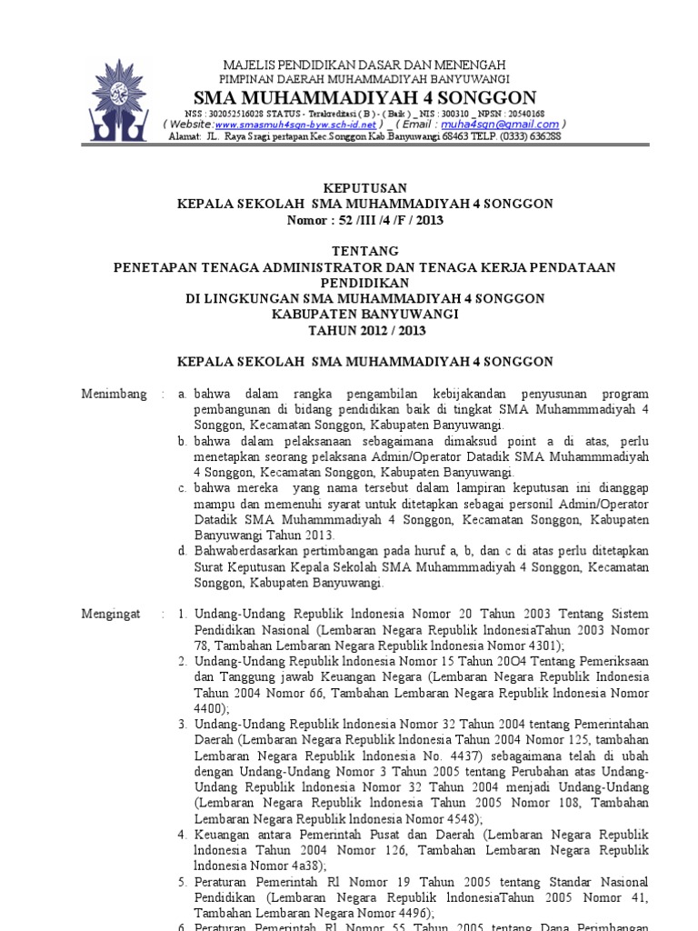 Contoh Sk Operator Sekolah. Bahwa dalam rangka percepatan pendataan pendidikan dibutuhkan tenaga operator pendataan dapodik tahun pelajaran 2016/2017 di sdn. , perlu menetapkan keputusan kepala sdn.
