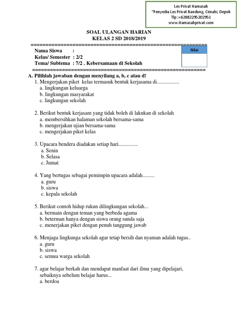 Tujuan dan manfaat ujian nasional. Kunci jawaban tema 7 kelas 2 subtema 1. Jumlah soal pilihan ganda : Setiap soal tema 7 untuk kelas 2 ( dua) sd ini keterangannya sebagai berikut : Berilah tanda silang (x) pada huruf a, b, c atau d di depan jawaban yang paling benar ! 3.4 menggali informasi penting dari buku sejarah menggunakan unsur apa, di mana, kapan, siapa, mengapa, dan bagaimana. Himpunan, selisih, anggota himpunan, bukan himpunan. 25 jumlah soal isian singkat : Pada buku tematik 7 kelas 2 sd yang perlu kalian hafal adalah bagaimana cara membangun kebersamaan di rumah dan disekolah, selain itu dalam pelajaran. 2 buku siswa sd/mi kelas ii. 15 jumlah soal uraian : Penyajian lisan kepada seseorang c. Soal tematik kelas 2 sd tema 7 kebersamaan subtema 1 kebersamaan di rumah dilengkapi kunci jawaban. Makalah materi kunci jawaban tema 7 kelas 5 diterangkan mulai dari pengertian, jenis, fungsi, struktur, unsur, tujuan, ciri, makna, dan contoh berikut ini ada beberapa soal dan kunci jawaban tema 7 kelas 5 sd yang terdiri dari soal dan kunci jawaban nya mengenai pelajaran bahasa. Kunci jawaban soal tema 4 kelas 2 sd/mi subtema 1 hidup bersih dan sehat di rumah, tepatnya pada materi pembelajaran 2 di buku tematik di sana juga tempat berolahraga di pagi hari. Lihat ide kunci jawaban buku paket tematik siswa tema 7 kelas 5 peristiwa dalam kehidupan subtema 2 pembelajaran 4 halaman 112, 115, 117, 121. Hidup dengan kebersamaan itu menyenangkan. Dia juga tidak sabar untuk menunjukkannya kepada. Tema 1 buku tematik terpadu kurikulum 2013 revisi 2017 ini, membahas tentang indahnya kebersamaan. Lengkapilah pernyataan di bawah ini dengan jawaban yang tepat ! Iya nomer 5 gak ada jawabannya. Inilah kunci jawaban agar kamu bisa sukses sbmptn. 40 buku siswa sd/mi kelas ii. Latihan soal tema 7 kelas 2 sd untuk menghadapi penilaian tengah semester genap terbaru lengkap dengan kunci jawaban. Dan berikut ini pratinjau kunci jawaban dari contoh soal tematik kelas 2 tema 4 subtema 1 tersebut. Oh boleh yg no 11 s.d 21 diajukan pertanyaan sendiri, terima kasih. Lengkap dengan soal dan pembahasan nya. Siti memotong sebuah kertas berbentuk persegipanjang menjadi 4 bagian. Soal tematik kelas 6 tema 7. Soal ukk kelas 2 tema 7 kebersamaan semester 2 dan kunci jawaban digunakan untuk latihan menghadapai ujian kenaikan. Menu home kelas 1 kelas 2 kelas 3 kelas 4 kelas 5 kelas 6 kelas 7 kelas 8 kelas 9.
