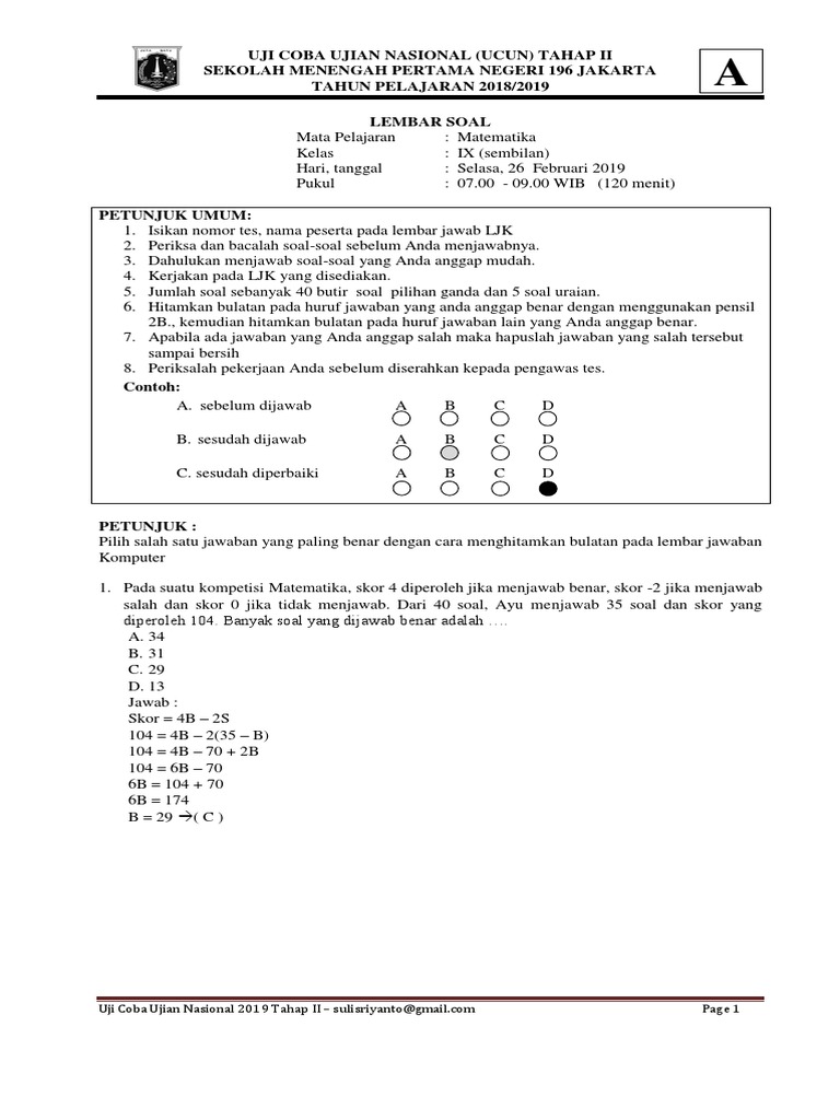 .Desain soal latihan ini sebagai hasil pelatihan membuat soal online melalui blogspot. Video pembahasan bocoran un smp 2019 (prediksi), soal dari blok pak anang.