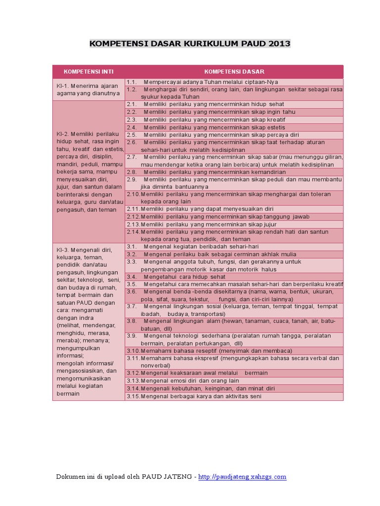 Download Kurikulum Paud 2013 Pdf. Untuk mensosialisasikan kurikulum paud 2013, pemerintah indonesia melalui menteri pendidikan mengeluarkan sejumlah aturan yang disebar melalui download kumpulan ebook kupas tuntas kurikulum paud 2013. Download as doc, pdf, txt or read online from scribd.