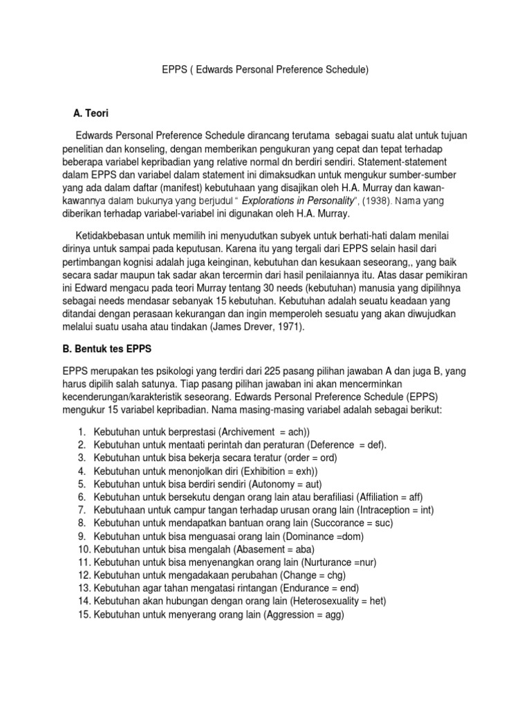 .Direktori file upi file type pdf tes psikologis tes epps. Epps skoring 1 • skala validitas adalah 15 pasang pertanyaan yang memiliki bunyi yang sama.