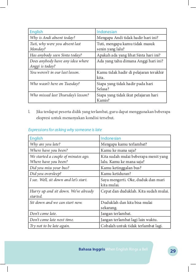 .Sampai di sini pelajaran hari ini. Bahasa inggris when english rings a bell.