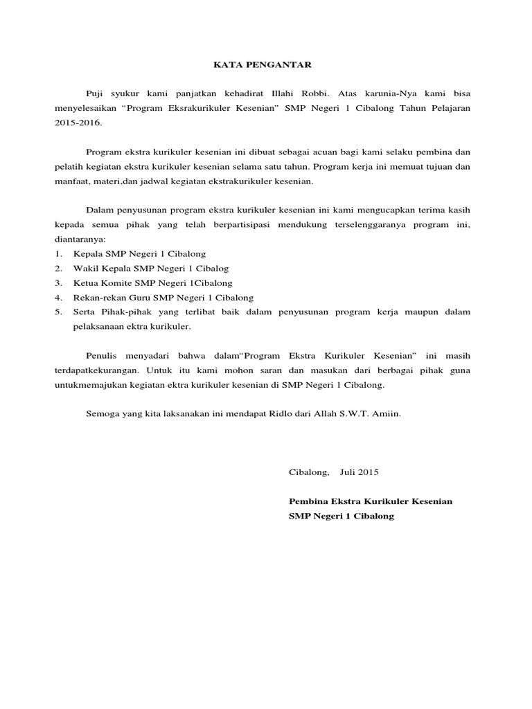 Kegiatan ektrakurikuler pramuka merupakan kegiatan yang bersifat wajib bagi seluruh peserta didik, sedangkan kegiatan yang lain merupakan ekrakurikuler pilihan. Sebagai pelengkap artikel ini, silakan menyimak dulu pembahasan berikut. Berikut ini adalah berkas contoh program kerja ekstrakurikuler kesenian (seni budaya) smp. Program ekstrakurikuler pramuka sd tahun 2019 2020 ekstrakurikuluer.