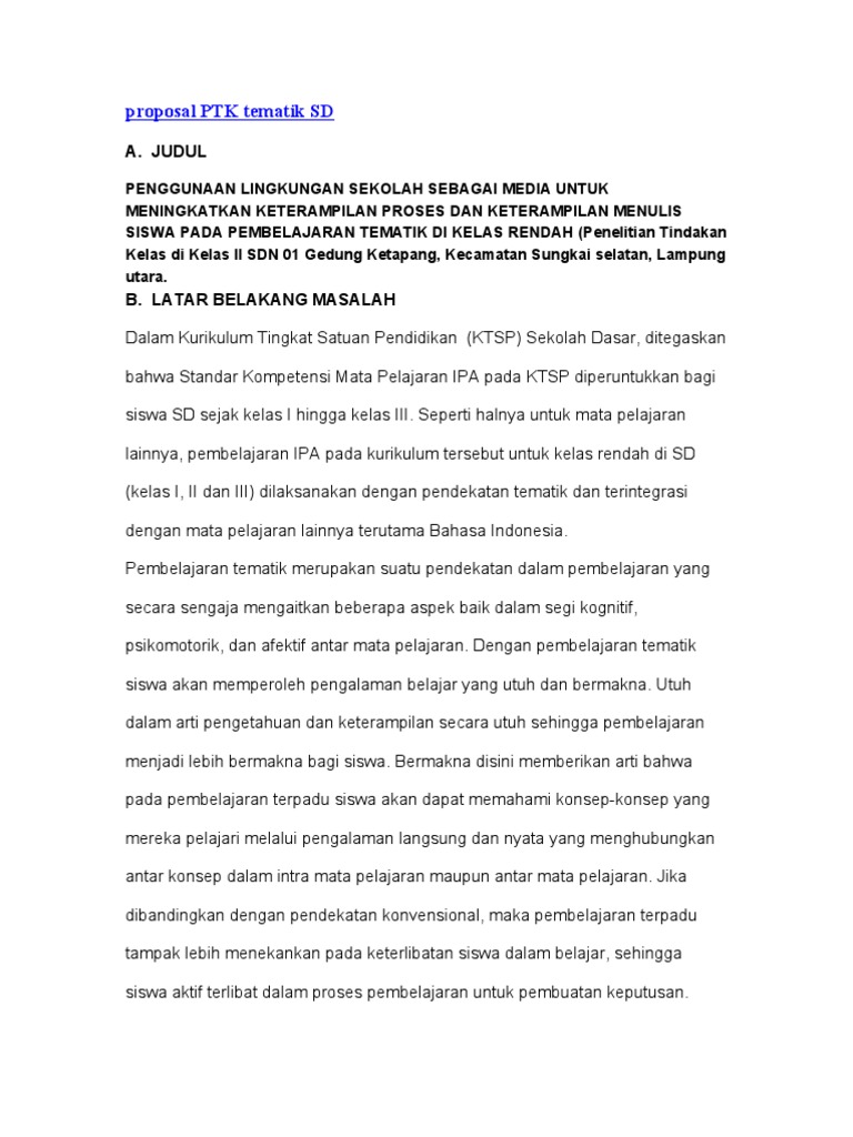Contoh Proposal Ptk Sd Kelas Iv Pdf Doc from gurupengajar.com