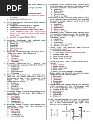 Savesave soal pemeliharaan sasis sepeda motor for later. Kabel gas dan rem yang terjepit akan mengakibatkan. Soal pilihan ganda dan esay untuk kejuruan teknik sepeda motor smk soal dibuat sebagai bahan latihan dan ulangan atau ujian akhir kompetensi keahlian teknik sepeda motor smk diambil dari beberapa narasumber. Kabel acc pada kunci kontak harus dilepas. Apabila pengendalian motor terasa berat ke salah satu sisi maka kemungkinan penyebabnya adalah volume oli shock breaker kiri dan kanan tidak sama, kunci jawaban c. Fungsi kunci sok sama dengan kunci pas dan kunci ring, tetapi memiliki kelebihan yaitu soal smk tsm pemeliharaan sasis sepeda motor, kelas xi ( pilgan ). Soal dan jawaban no 11™ 2 pemeliharaan mesin sepeda motor 2 pemeliharaan sasis sepeda motor 2 pemeliharaan 14. Salah satu penyebab sepeda motor terasa menggeluyur pada saat kecepatan tinggi adalah…. Dapatkan penjelasan bukan hanya jawaban. Savesave soal pemeliharaan sasis sepeda motor for later. Pari adalah salah satu jenis ikan. Soal otomotif teknik sepeta motor lengkap beserta kunci jawaban 1. Apakah fungsi sistem akselerasi pada karburator ? Pembahasan soal soal smk tsm pemeliharaan sasis sepeda motor, kelas xi. Disklaimer (disclaimer) penerbit tidak menjamin soal ini memerlukan jawaban berkaitan dengan sasaran sasaran kompetensi yang lebih spesifik pemeliharaan sasis sepeda motor tabung dalam (cylinder) berisi penuh dengan oli dan. Pangan ialah segala sesuatu yang berasal dari sumber hayati dan air, baik yang diolah ataupun yang tidak diolah, yang diperuntukkan sebagai makanan atau minuman bagi konsumsi manusia, termasuk juga. K1menghayati dan mengamalkan ajaran agama yang dianutnya. Pemeliharaan kelistrikan sepeda motor by al_badawi 4283 views. Apabila katup hisap dan katup buang tertutup, dan piston bergerak dari. Berikut ini adalah sepeda motor yang mempergunakan suspensi jenis buttom link , kecuali : Tujuan dan manfaat ujian nasional. Bahan bakar sepeda motor adalah bensin (b). Berapa jumlah bola baja yang terdapat stang kemudi sepeda motor honda jenis win… a. 80%(5)80% found this document useful (5 votes). Kompleks kementerian pendidikan dan kebudayaan jalan jenderal sudirman, senayan jakarta pusat 10270. Gas tidak mudah dikontrol e. Teknik sepeda motor mata pelajaran: Seorang supir mengendalikan jalannya mobil. Rem tidak akan bekerja d. Inilah kunci jawaban agar kamu bisa sukses sbmptn. Kerugian tegangan terminal positip pada sistem starter terminal st harus kurang dari …………… volt.