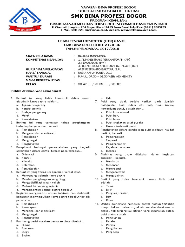 46+ Soal Soal Bahasa Indonesia Kelas 12 Gif