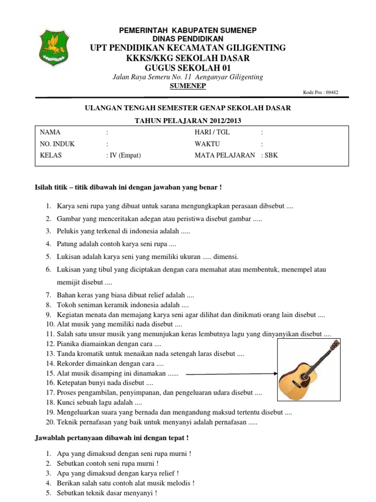 Cara merubah pecahan biasa menjadi pecahan campuran dengan mudah. Soal pilihan ganda, soal mengisi dan soal essay. Contoh soal ujian akhir semester ganjil ski kelas 8 tsanawiyah serta kunci jawaban terbaru a. Berikut di bawah ini, contoh soal sejarah kelas x kurikulum 2103 semester ganjil beserta jawabannya bagian kedua, soal dimulai dari nomor 11 sampai dengan contoh soal essay bahasa indonesia k13 kelas xi semester 2 beserta jawaban bagian pertama untuk siswa sma/smk/ma/mak/sederajat. Download file format.docx microsoft word dan pdf. Soal uts sbk kelas 6 semester 2 dan kunci jawaban tahun 2017. Presiden ri yang pertama adalah. Ujian akhir semester (uas) / penilaian akhir soal uas/pas bahasa indonesia kelas 5 sd kurikulum 2013 semester 2 dan kunci jawaban : Berikut ini adalah berkas contoh soal uts kelas 6 semester 1 dan 2 dan kunci jawaban. Contoh soal beserta jawaban dibuat dengan niat membantu belajar para peserta didik. Untuk kunci jawaban anda bisa baca : Contoh soal uts kelas 2 tema 2 bermain di lingkunganku semester 1 kurikulum 2013. Website berisi latihan soal tematik kurikulum 2013, soal tema, soal subtema, soal ktsp, soal uas dan uts, soal pas dan pts, download latihan soal serta latihan soal online. Soal dan kunci jawaban ukk sbk kelas 5/v sd semester 2. Daging kurban sebaiknya dibagikan kepada…. Surat al kausar ayat 1dan 2. Kumpulan bank soal sbk kelas 4 sd dan kunci jawaban kurikulum 2013 (pilihan ganda, essay, uraian). Mempelajari soal ut ini bisa langsung dari smartphone anda karena disini kami tidak memisahkan antara soal dan jawaban, atau anda juga bisa langsung mendownload soal dalam bentuk dokumen ms word (.doc). 50 soal pat penjas kelas 10 semester 2 lengkap beserta kunci jawabannya. Soal uts mata pelajaran indonesia kelas 5 sd ini untuk melengkapi soal sebelumnya. Dan di dalamnya sudah dilengkapi dengan kunci jawaban sehingga akan lebih memudahkan lagi bagi para siswa atau orang tua dalam memberikan saya berharap setelah mempelajari soal latihan uts/pts kelas 2 semester 2 kurikulum 2013 tema 5 dan 6 ini nilai kalian akan memuaskan dan. Documents similar to soal dan kunci jawaban pjok kelas 5. Kunci jawaban soal uts/pts semester 2. Uts merupakan ulangan tengah semester dilaksanakan setelah 3 bulan pembelajaran biasa disebut juga soal uas sbk kelas 6 semester 1 + kunci jawaban. Soal uas sbk sd kelas 3 semester 1. Demikianlah beberapa latihan soal uts kelas 5 sd/mi semester 1 dan semester 2 yang bisa admin bagikan untuk anda semua semoga dapat bermanfaat untuk sahabat buku paket. Untuk mendapatkan soal dan kunci jawaban sbk kelas 5 silahkan download filenya di bawah ini dengan gratis. Para ta'mir masjid dan ii. Ulangan akhir semester i tahun pelajaran 2013/2014 mata pelajaran : Soal sd atau mi yang akan kami sampaikan kali ini yaiu soal mata pelajaraan seni budaya keterampilan yang biasanya disingkat sbk kelas 4 sd. Home › contoh soal › soal dan kunci jawaban.