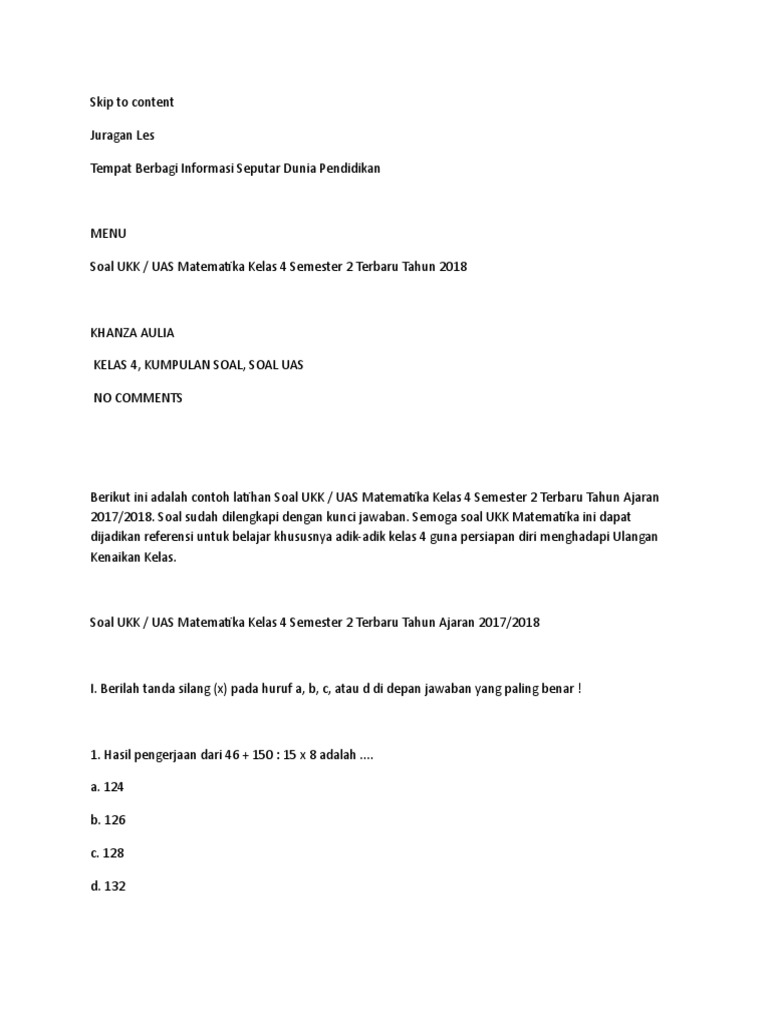 49+ Soal Ukk Matematika Kelas 4 Semester 2 Dan Kunci Jawaban Pictures