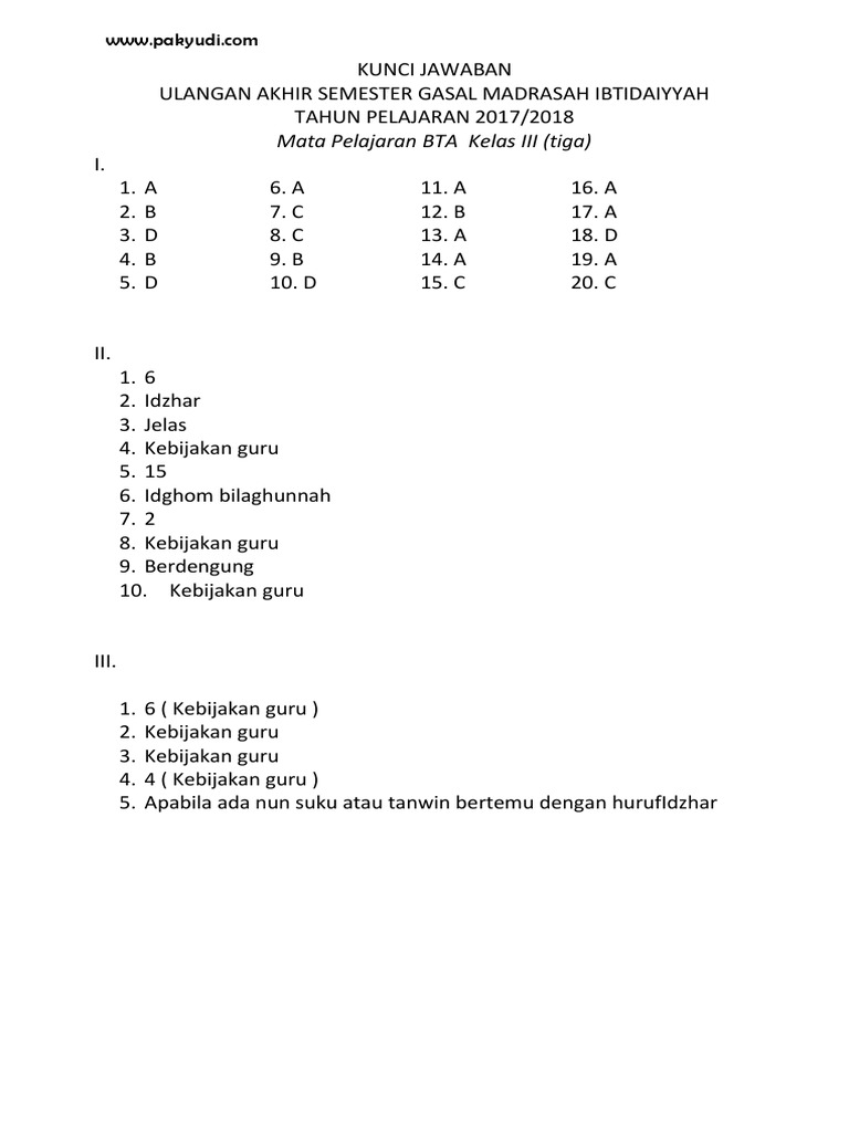 50+ Soal Btq Kelas 2 Semester 1 Dan Kunci Jawaban Images