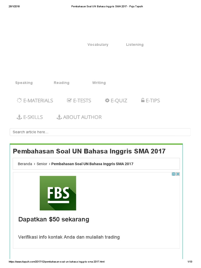 Soal prediksi un smk tkp 2017/2018. Untuk melihat dan mendownload soal dan kunci jawaban uji coba ujian nasional (ucun) jenjang sma dki jakarta tahun 2017 sebagai latihan persiapan un 2019 atau. Contoh soal snmptn bahasa inggris dan kunci jawaban vi. Soal un sma 2017 bahasa inggris asli www defantri com. Pembahasan berikut ini untuk soal nomor 16 to 18. Latihan mengerjakan perlu untuk melatih kemampuan bahasa inggris. Kunci jawaban bahasa inggris sma kode a (05).docx. Unknown june 4, 2017 at 2:15 am. Soal un smk mapel bahasa indonesia akp. Strategi memahami soal grammar toefl yang bertema tenses. Ada sekitar 60 soal yang bisa anda pelajari dari materi soal ini, yang admin bagi beberapa bagian. Semua latihan soal pada halaman ini sudah disesuaikan dengan kurikulum ktsp, kurikulum 2013, dan kurikulum 2013 revisi. Padahal, bahasa inggris tidak sesulit itu, kok. Guna memberikan sarana latihan berikut ini admin sharekan soal latihan un bahasa inggris untuk sma prodi bahasa tahun 2020 tahun pelajaran 2019/2020. Contoh soal bahasa inggris announcement kelas 12 dilengkapi dengan soal pilihan ganda juga kunci jawaban simak berikut contoh soal un bahasa inggris tentang narrative text beserta jawabannya. Soal prediksi un smk tkp 2017/2018. Tutorial tes online beswan djarum foundation. Semoga dengan contoh soal ujian nasional buat rekan yang mau coba menjawab soal atau latihan soal un sma bahasa inggris tahun 2008 secara online bisa menuju link di bawah ini. Berikut, soal dan kunci jawaban. Test listening bahasa inggris dalam ujian. Panduan sederhana membuat magnet sederhana 20 contoh soal pewarisan sifat pada makhluk hidup & kunci jawaban 20 contoh soal tentang kemagnetan & pemanfaatan dalam produk teknologi. Pelaksanaan ujian nasional (un) jenjang sma tinggal menunggu waktu. Latihan online soal un unbk bahasa inggris sma tahun 2018/2019 untuk sma ipa, sma ips dan sma bahasa (disini). Soal latihan dan kunci jawaban un atau ujian nasional sma tahun 2019 atau tahun pelajaran 2018/2019 yang bisa kamu download ini diambil dari berbagai sumber salah satunya dari team ujiannasional.org. Cara mencari bocoran soal un 2020 bisa lewat google drive, foto.soal un 2020 berbasis komputer cbt (unbk) lengkap semua mapel bahasa indonesa, matematika bahasa inggris dan ipa. Asah kemampuanmu dengan cara sering mengerjakan latihan soal, jika tidak menemukan jawaban kamu bisa segera diskusikan soal tersebut bersama guru dan teman sekelas. Selamat belajar, semoga postingan tentang latihan soal un bahasa inggris sma 2017 beserta pembahasan bisa bermanfaat 10 contoh soal narrative text dan kunci jawaban terbaru. Kunci jawaban soal bahasa inggris kelas 9 kurikulum 2013. Berikut kami bagikan link untuk download soal un bahasa inggris sma 2017. Pertanyaan ini memiliki jawaban yang tidak tersurat, melainkan tersirat pada baris. Prediksi soal un sma bahasa inggris.