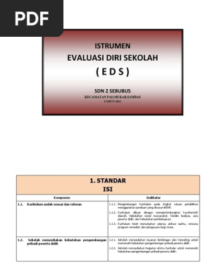 Instrumen apa yang digunakan dalam evaluasi diri sekolah (eds) instrumen evaluasi diri sekolah (eds) terdiri dari 8 (delapan) standar sesuai dengan standar nasional pendidikan (snp).
