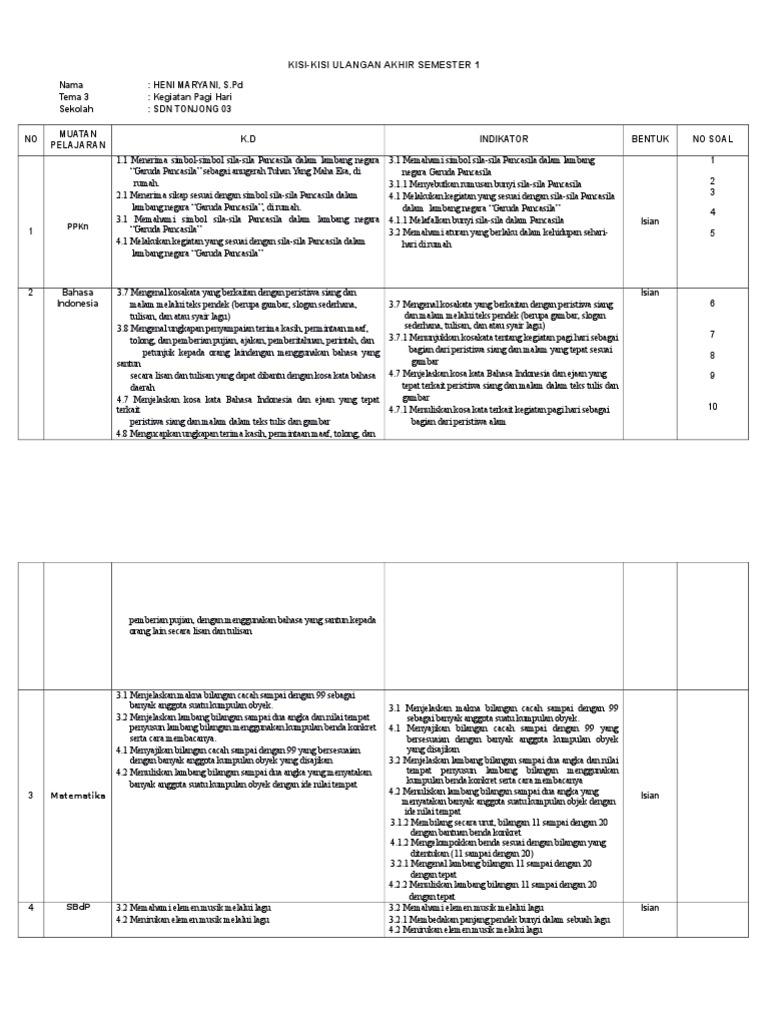 Soal sd kunci jawaban soal sd kelas 1 2 3 4 5 6 gratis. Karena pesan dari video ini adalah info untuk mendapatkan kisi. Contoh soal seni budaya kelas 3 semester 1 dan semester 2 kurikulum 2013 untuk kisi kisi latihan soal uas mid semester berupa soal pilihan ganda dan essay semua bab 1, 2, 3, 4, 5, 6, 7 dst beserta kunci jawabannya dan pembahasannya lengkap. Berikut adalah soal uts ips kelas 3 semester 1 yang dilengkapi dengan kunci jawaban dan kisi kisinya, yaitu Mohon maaf video agak kurang jelas, semoga tidak mengurangi informasi yang ingin disampaikan. Soal sd kunci jawaban soal sd kelas 1 2 3 4 5 6 gratis. Tulis namamu di sudut kanan soal agama islam kelas 3 sd dan kunci jawaban. Bukan sekedar info biasa, kumpulan soal, kumpulan aplikasi, kumpulan buku, novel berikut bospedia memberikan soal ukk pai kelas 3 sd. Menggunakan mainan secara bergantian dengan teman adalah salah satu contoh sikap ………. Pada pertengahan seperti ini kamu akan menghadapi ulangan tengah semester pertama ketika duduk di kelas tiga. ( klik angka 2 atau 3 ). Semboyan bhineka tunggal ika diambil dari kitab …. Wujudnya adalah sebuah tabel yang memuat tentang perperincian materi dan tingkah laku beserta. Sub tema 2 bermain di rumah teman 1. Proses evaluasi berupa ulangan harian (uh) atau penilaian harian (ph) dan. Soal kurikulum 2013 kelas 2 sd tema 2 bermain di lingkungan sub tema 2 ta 2015/2016. Sd semester 1 kisi kisi soal pas kelas 3 sd semester 1 lihat juga soal pas/uas kelas lainnya: Pembelajaran di kelas 3 sd/mi menggunakan metode tematik terpadu. Untuk mengunduh file gunakan tombol download yang tersedia kemudian buka link download yang muncul. Setelah mempelajari buku tematik kelas 2, siswa akan melaksanakan uts. Download naskah soal penilaian akhir semester 1 kelas 3 sd/mi tema 1 pertumbuhan dan perkembangan makhluk hidup berformat.pdf. Kisi kisi uts tematik kelas 1 tema 2 semester 1 ganjil kurikulum. Kumpulan soal uts kelas 3 sd semester 1 ktsp dan tematik yang akan admin cinta bagi pada kesempatan posting soal kali ini, spesial untuk me. Soal mid ips sd kelas 3 semester ganjil ini terdiri dari 20 soal pilihan ganda/ pg, 5 soal isian singkat dan 5 soal essay. Adapun kisi kisi yang bisa di dapatkan diantaranya adalah kisi kisi tematik pertema, akidah akhlak, bahasa arab, qur'an hadist, ski, fiqih, b. V pilihlah a,b,c,atau d pada jawaban yg di anggap paling benar ! Pada penyusunannya soal uas kelas 3 sd semester 1 kurikulum 2013 ini sudah sesuai dengan keterampilan berpikir tingkat tinggi (higher order thinking skills/ hots). Contoh kisi kisi soal tematik kelas 2 sd guru ilmu sosial. Kumpulan soal latihan ulangan tengah semester dan akhir semester 1 tahun ajaran 2017/2018 untuk kelas 3 sd dan mi pada semua mata pelajaran. Kisi kisi pat sd/ mi kelas 1 s/d 5 ini terdiri dari mata pelajaran sebagai berikut :