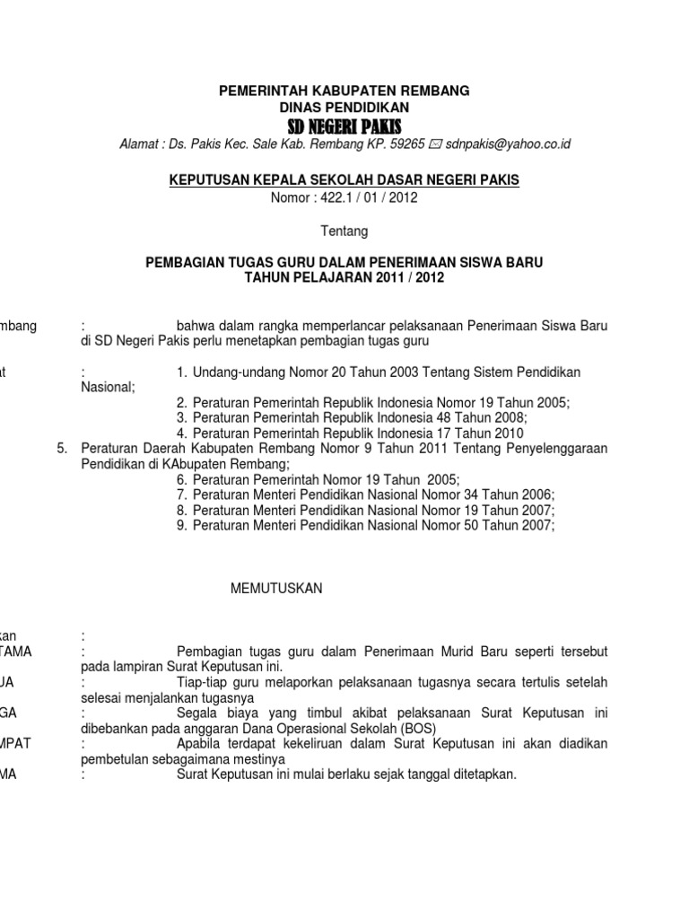 Sk Penerimaan Siswa Baru. Nah agar kegiatan penerimaan siswa. Keterangan lebih lanjut dapat menghubungi pihak sekolah.