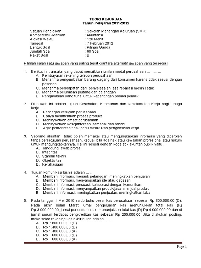 .75 soal teori kejuruan akuntansi smk lengkap 2. Com page 1 contoh soal teori kejuruan kompetensi keahlian :