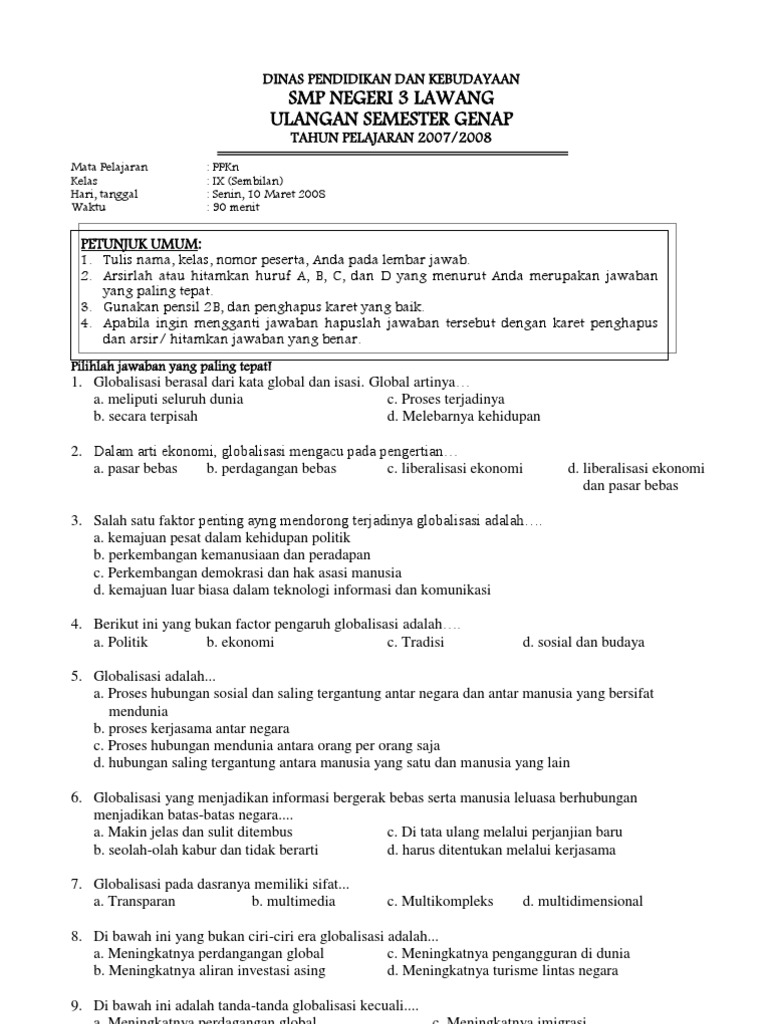 Download Soal Uas Pkn Kelas 9 Semester 1 Dan Kunci Jawaban Gif
