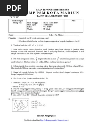 Get Kisi Kisi Matematika Kelas 7 Semester 2 Background