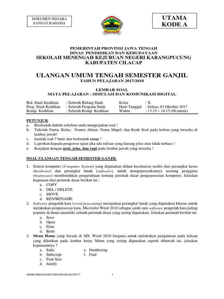 Download contoh soal dan jawabannya ujian tengah semester (uts) ii mapel seni budaya untuk kelas 7 smp/mts kurikulum 2013 tahun 2017/2018.