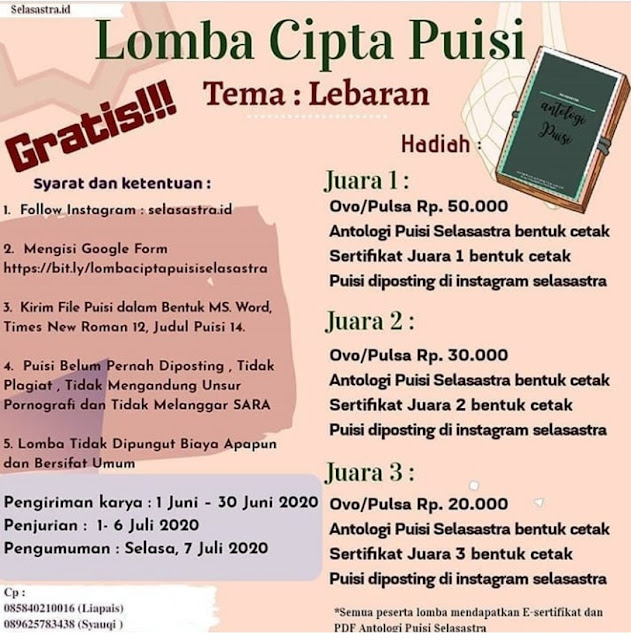 Puisi Lebaran. Puisi sangatlah menarik, semua hal bisa tertuang di dalamnya. Puisi karya sitor situmorang yang berjudul malam lebaran dianggap sebagai puisi yang sangat pendek, tetapi memiliki makna yang sangat dalam dan sukar diterjemahkan.