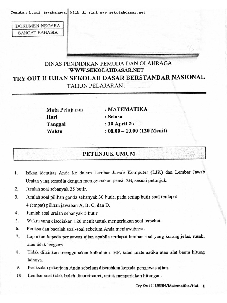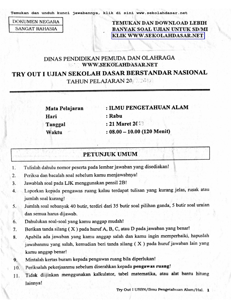 Kumpulan soal ipa us sd 2017 dan kunci jawaban.