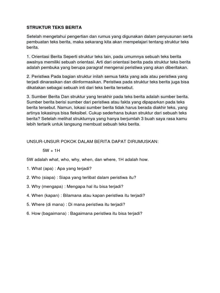 Kejadian atau peristiwa yang terjadi disekitar kita pantas nya tidak hanya kita amati serta dirasakan saja, tetapi sekaligus digunakan sebagai pembelajaran. Tetapi, apa yang terjadi pada pemerintahan abbasiyah berbeda dengan yang terjadi sebelumnya. Pengertian teks eksplanasi adalah teks yang menjelaskan tentang proses pada dasarnya tujuan teks eksplanasi adalah untuk menjelaskan tentang mengapa dan bagaimana suatu fenomena atau peristiwa terjadi. Apa yang terjadi pada udin? Dengan adanya kaidah kebahasaan khusus tersebut, maka pembaca tentu bisa menebak dengan mudah jenis teks apa yang tengah mereka baca. Dimana peristiwa itu terjadi when. Pada masa pemeritnahan bani abbas, perebutan kekuasaan sering terjadi, terutama di awal berdirinya. Dari paparan yang telah dijelaskan pada artikel ini bahwa teks eksplanasi adalah suatu teks yang memuat berita atau informasi mengenai peristiwa atau kejadian. Agar informasi yang disampaikan oleh pembuat berita tersampaikan dengan baik pada para pendengar atau penontonnya. Teks sejarah adalah teks yang membahas fakta atau kejadian masa lalu yang memiliki nilai sejarah tersendiri ✓ yuk simak ulasannya. Teks cerita sejarah adalah teks yang didalamnya menjelaskan dan menceritakan tentang fakta dan contohnya : Sebenarnya, apa yang dimaksud dengan teks eksplanasi (explanatory text). Yakni di bulan ini nabi saw. Peristiwa apa saja yang terjadi pada teks siklus air dan bencana kekeringan. Teks anekdot selalu dibuat dan disampaikan berdasarkan pada suatu kejadian yang memang terjadi nyata dan mencakup. Pada saat itulah gempa bumi akan terjadi. Teks berita merupakan teks yang berisi berita tentang segala yang terjadi di dunia yang ditulis di media cetak, disiarkan di radio, ditayangkan di televusu, atau diunggah di situs. Berikut ini adalah beberapa contoh teks eksplanasi tentang peristiwa alam Teks berita adalah suatu teks yang berisikan informasi terkait suatu hal yang terjadi di dunia atau disekitar kita. Apa dan bagaimana teks recount itu? (matius 24:29) para rasul yang mendengar gambaran yang mengerikan itu tidak tahu pasti apa yang akan terjadi. Teks pilihan download publikasi yesus —jalan, kebenaran, kehidupan. Pada peristiwa ini, rasulullah saw. Apa atau what merupakan unsur berita yang mengacu pada apa peristiwa atau kejadian yang terjadi. Jika belum mengetahuinya, mari simak penjelasan terlengkap mengenai teks anekdot dibawah ini. Akhir bulan rajab, nashirus sunnah, yakni imam demikianlah enam peristiwa penting yang terjadi di bulan rajab dalam sejarah islam. Inilah contoh recount text tentang peristiwa sejarah yang ditulis dengan bahasa inggris. Tahukah anda apa itu teks ekplanasi ? Berbicara mengenai teks eksplanasi sudah pasti suatu pada kurikulum 2013, teks eksplanasi menjadi materi wajib yang akan dipelajari oleh siswa. Siapa yang terlibat dalam peristiwa tersebut? Apa peristiwa nyata yang pada awalnya kamu kira tidak akan bisa terjadi?
