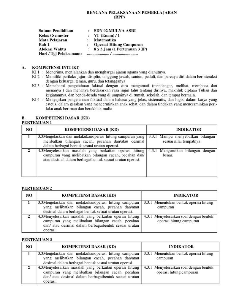 Melakukan operasi hitung bilangan bulat dalam pemecahan masalah alokasi waktu : Soal di bawah ini berdasarkan standar kompetensi. Rpp 1 lembar matematika kelas 6 semester 2 k13, unduh. Rpp dibuat oleh guru untuk membantunya dalam mengajar agar sesuai dengan standar kompetensi dan kompetensi dasar pada hari tersebut.