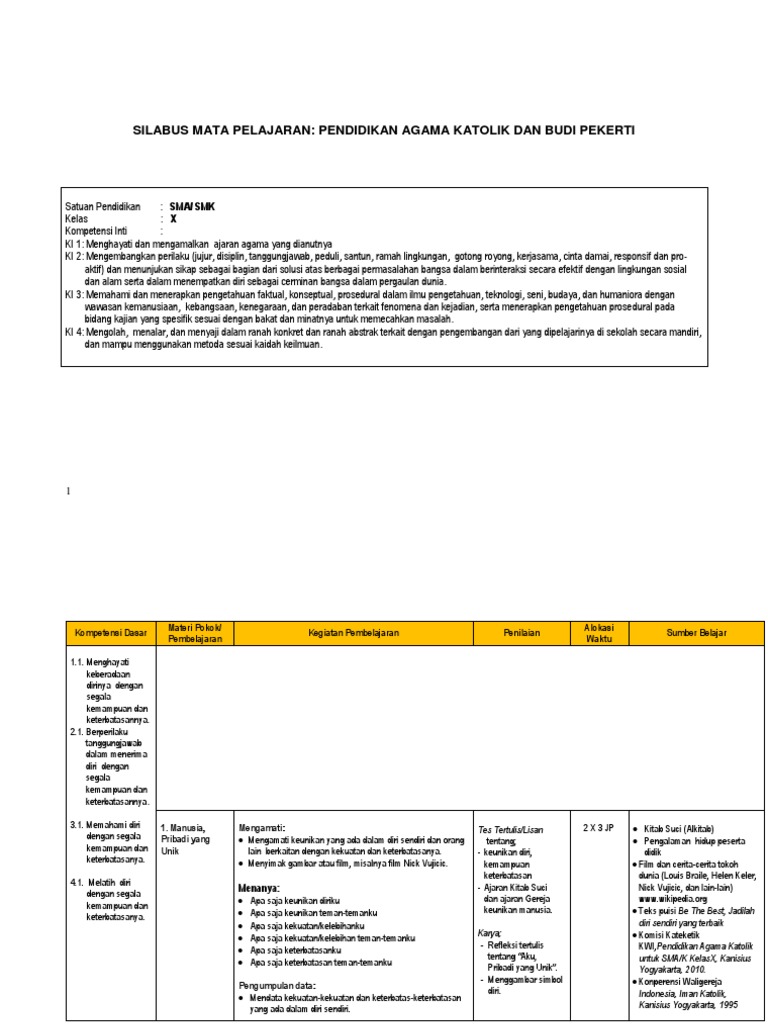 View Silabus Pendidikan Agama Katolik Smp Kurikulum 2013 Revisi 2017 PNG