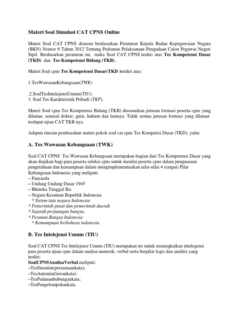 .Soal cat cpns skd tahun sebelumnya. Tersedia soal jawab dan pembahasan seleksi kompetensi dasar (skd).