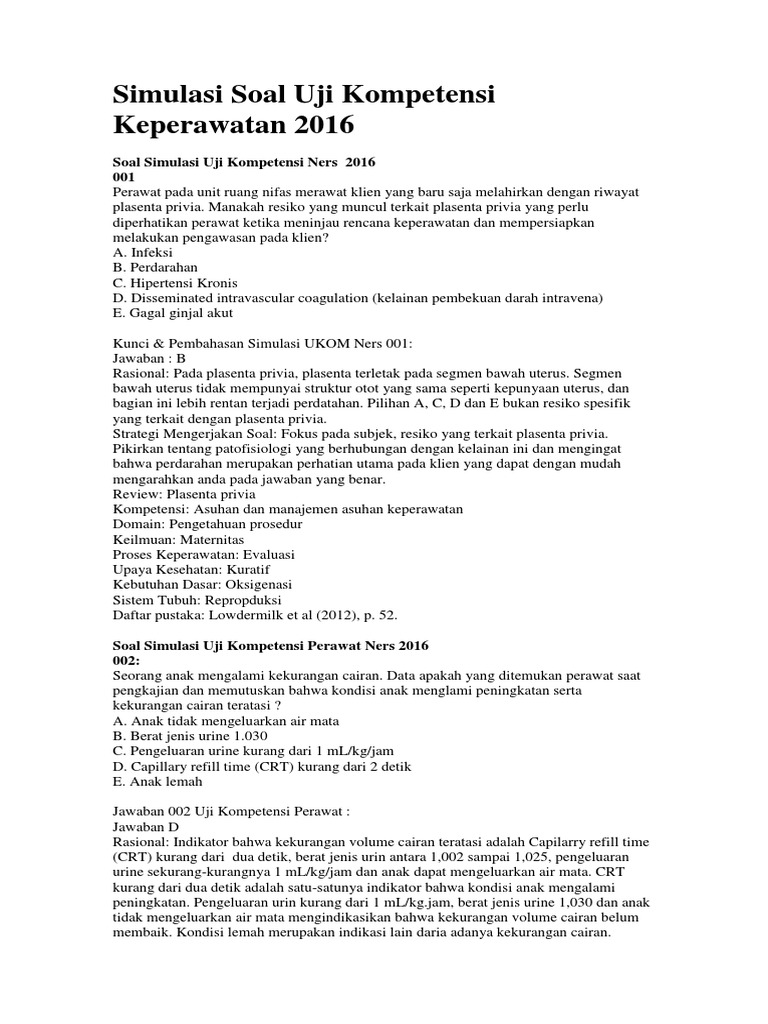 Untuk contoh soal bidang lainnya, seperti teknik sipil, keuangan, bidan, perawat, jaksa, pertanian, pertanahan, kelautan dan perikanan dan bidang bidang lainnya bisa anda lihat pada keterangan di penghujung artikel ini. Soal cpns 2018 yang sering muncul kunci jawaban serta pembahasan rinci mudah dimenegerti oleh siapa saja. Bilangan cacah operasi soal penilaian harian kelas 6 tema 2 sub tema 2 dan kunci jawaban adalah sebuah video yang 180 soal ukom keperawatan lengkap kunci jawaban. Berikut adalah pembahasan soal chasis dan pemindah tenaga teknik sepeda motor. Seseorang pasien perempuan yang baru berusia 28 tahun telah hamil 30 minggu dan dengan riwayat kehamilan g4 p3 a2, pasien tersebut datang ke rs bersama dengan suaminya tersayang dengan keluhan perdarahan. Dan untuk sobat yang ingin mendownload file contoh latihan soal un/unbk bahasa indonesia smk ini admin sudah menyediakan dalam bentuk pdf. Berikut ini, soal lks pg (penjaskes) kesehatan pribadi, kurikulum 2013, beserta kunci jawabannya, untuk sma/smk/ma/sederajat. Untuk contoh soal bidang lainnya, seperti teknik sipil, keuangan, bidan, perawat, jaksa, pertanian, pertanahan, kelautan dan perikanan dan bidang bidang lainnya bisa anda lihat pada keterangan di penghujung artikel ini. Bertujuan dapat membantu semua perawat indonesia atau profesi ners di seluruh indonesia sebagai bahan untuk persiapan menghadapi ujian kompetensi perawat dan ners 2018. Seleksi mengerjakan soal tes twk termasuk dalam tahap seleksi kompetensi dasar penerimaan cpns. Ukom perawat dan ners 2018 ini didesain praktis dan mudah dipahami. Contoh soal uji kompetensi / ukom kebidanan dan kunci jawaban lengkap dengan pdf doc tahun 2019, 2020, 2021, 2022, 2023. Pembahasan soal ukom terbaru, soal campuran, soal askeb kehamilan, persalinan, nifas, bayi dan juga promosi kesehatan. 15 soal gmb dan gmbb dengan pembahasan. Dan kunci jawaban serta pembahasannya. Soal ukom bidan 2019 / 2020 dan kunci jawaban pdf edisi 6 dibawah ini telah kami siapkan contoh soal uji kompetensi (ukom) kebidanan edi. Pembahasan dan kunci jawaban masih membutuhkan koreksi sehingga perlu kiranya untuk diperkuat dengan memastikan kebenaran jawaban. Soal pilihan ganda dan jawaban kesehatan pribadi. Latihan soal tes cpns twk sangat penting juga untuk mencoba kemampuan pribadi. Sedangkan untuk contoh soal pppk kompetensi manajerial bisa anda lihat di. Berbagi ilmu 9/20/2018 05:23:00 am. Seorang ibu berumur 36 tahun, datang rumah sakit atas rujukan bidan karena pre eklamsi berat. Soal, kunci jawaban dan pembahasan ukom perawat lengkap.docx. 12 soal gmb plus kunci jawaban. 1.definisi wirausaha adalah a.sikap selalu berpikir positif dalam menghadapi segala hal b.orang yang menjalankan usaha atau perusahaan dengan kemungkinan untung atau rugi c.sikap yang selalu ingin tahu. Berikut ini adalah latihan soal uji kompetensi (ukom) d3 bidan yang bersumber. Hasil pengkajian perawat didapatkan gip0a0, hamil 34 minggu, 1 kali melakukan ante natal care, tekanan. Kunci jawaban soal cpns twk lengkap pembahasannya. Untuk mempelajari materi ini lengkap dengan 25 soal glb dan glbb beserta kunci jawabannya, silakan anda klik disini. Mata pelajaran yang akan kita bahas adalah mata pelajaran matematik. Soal pilihan ganda ujian nasional tingkat sma.